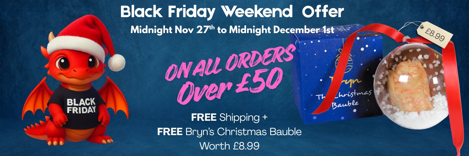 Mischievous little nuggets of joy from our baby Welsh Red Dragon, Bryn (Y Babi Draig Goch). Legend has it that baby dragons are rather tricky to potty train (no one makes dragon nappies, see), and when Bryn gets the giggles… well, magic happens. Each little chocolate-covered toffee popcorn “nugget” is a tiny taste of wonder, the sort you’ll want to share, but probably won’t. Pob lwc (good luck) saving any for later!