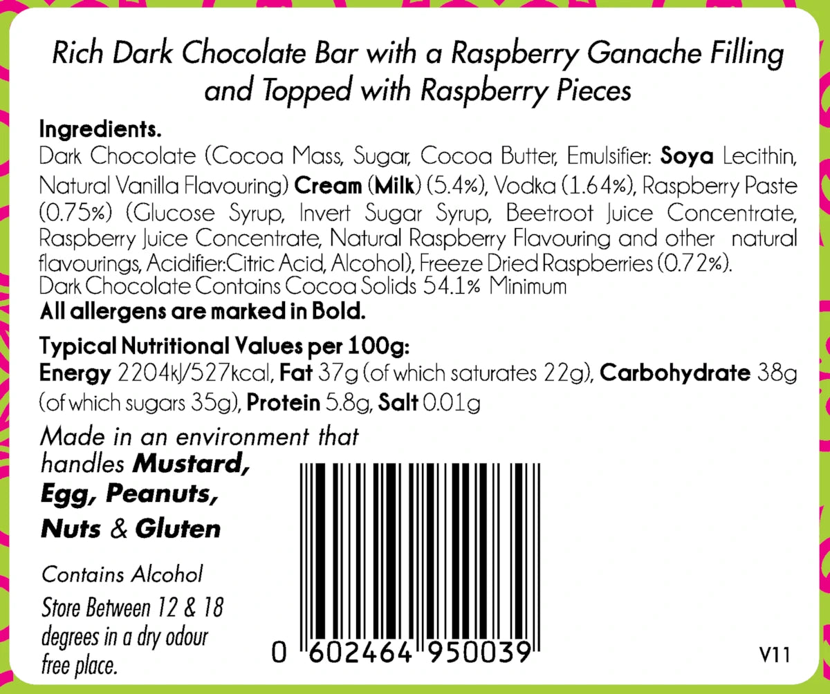 The raspberry and vodka dark chocolate bar is the perfect gift for even the biggest chocolate connoisseur, or it can simply be your own guilty pleasure. You choose, we won't tell anyone!