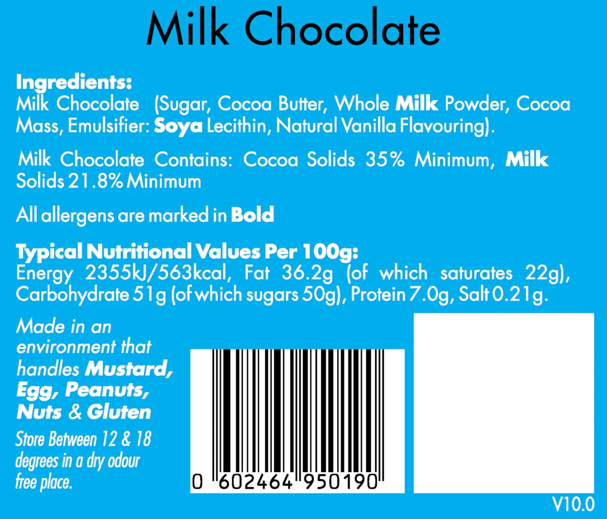 Here at the Wickedly Welsh Chocolate Co we ensure nothing but the best ingredients are added to our bars, so you can sit back and enjoy the experience in the sure and certain knowledge that you’re just enjoying pure and simple milk chocolate made from only the finest ingredients.