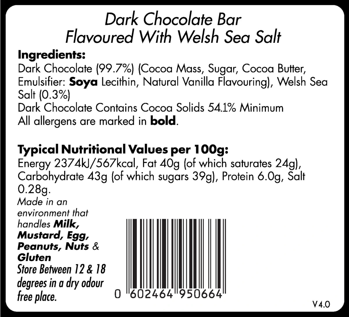 Dark Chocolate and Welsh Sea Salt: Dive deep into the intense flavours of our dark chocolate, elevated by a pinch of Welsh sea salt from the shores of Anglesey. It's a harmonious blend of sweet and salty and a testament to the treasures of Wales.